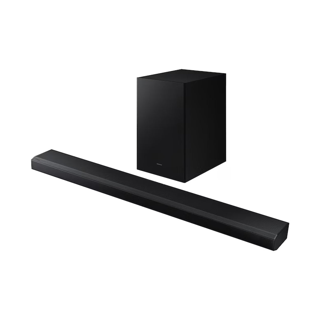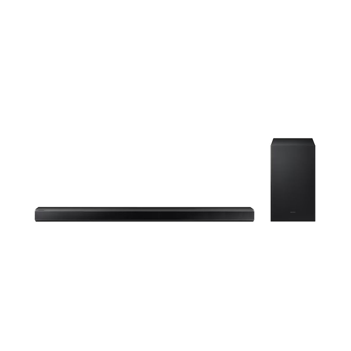 صُمم مكبر الصوت ليتكامل بسلاسة، وهو مزود بتقنية Q-Symphony، مما يسمح له بالعمل بتناغم مع أجهزة تلفزيون سامسونج المتوافقة من خلال مزامنة مكبرات صوت التلفزيون ومكبرات صوت مكبر الصوت للحصول على تجربة صوتية أكثر اكتمالًا وديناميكية. تعمل ميزة SpaceFit Sound على معايرة الصوت تلقائيًا بما يتناسب مع خصائص غرفتك، مما يضمن توازنًا صوتيًا مثاليًا في أي مساحة. بالإضافة إلى ذلك، فهو يدعم الاتصال بشبكات Wi-Fi وBluetooth، إلى جانب توافقه مع المساعد الصوتي، مما يتيح التحكم السهل والبث اللاسلكي من أجهزتك المفضلة.