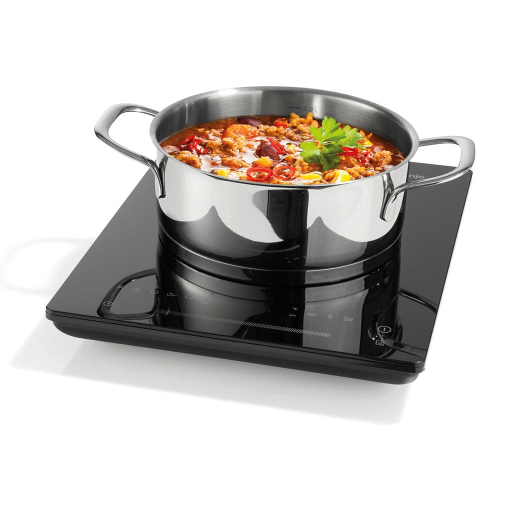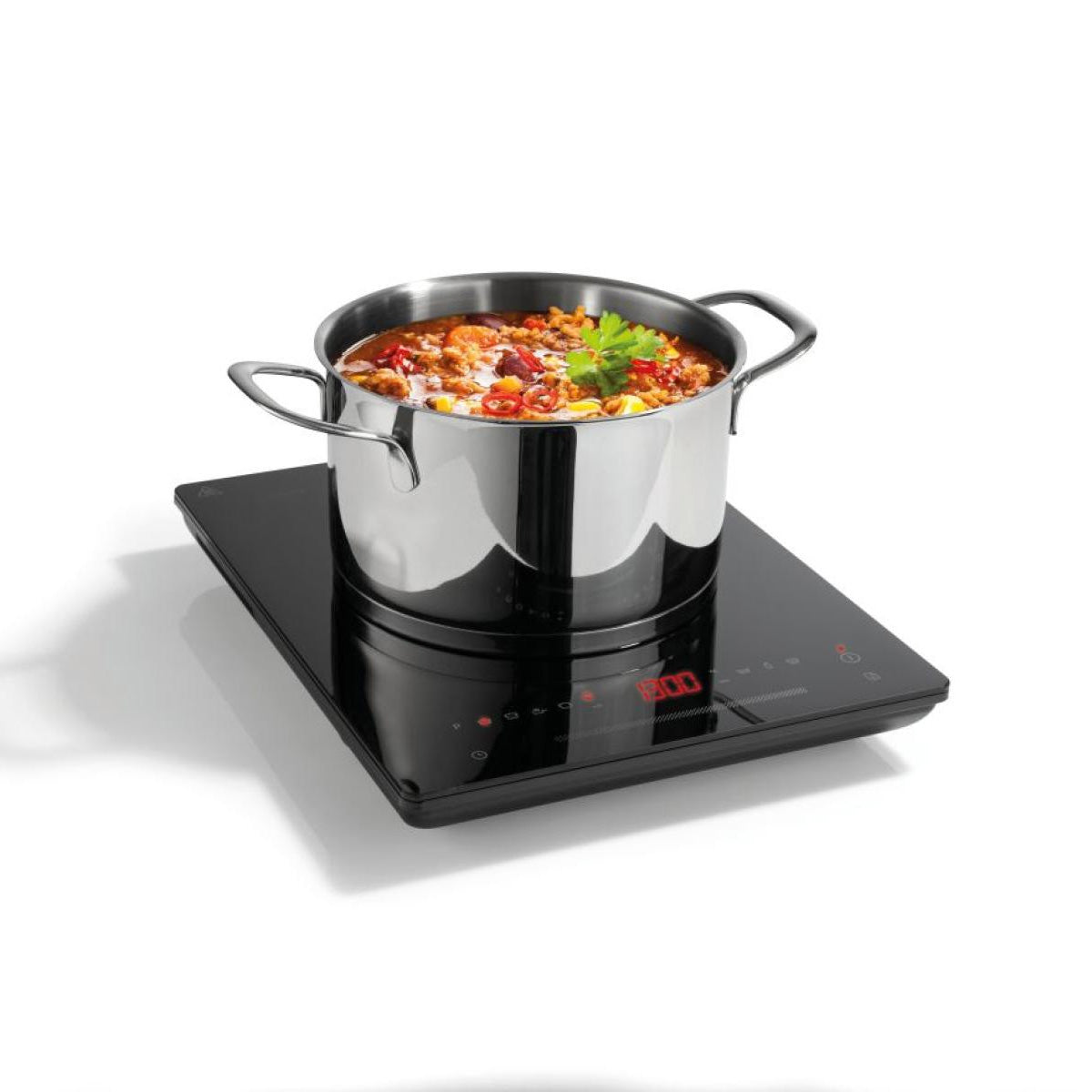 Control the cooking with three sensor buttons, slider and light indicators. With the sensor button "menu" choose between 7 preset programs, including hotpot, stew, stir fry, soup, boil, milk and steam. Cooking will start automatically with preset power or temperature and for the preset time. Power and time can also be manually adjusted.