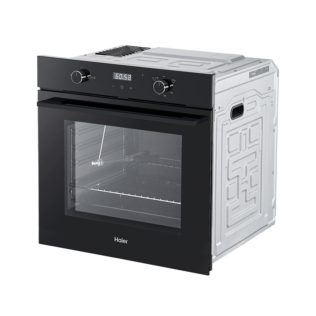 Enhance your kitchen with the perfect blend of tradition and technology with the Haier HOX6121GB Built-In Gas Oven – 80 Liters. Designed in a sleek black glass finish, this 60×60 cm oven offers a generous 80L capacity, ideal for preparing large family meals with ease.