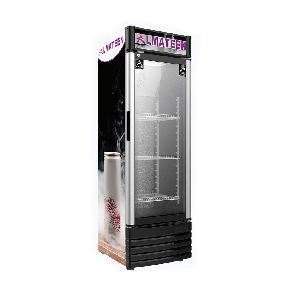 Showcase your products with confidence using the ALMATEEN SCMA173AU-CH Display Refrigerator, offering a generous 209 L (16 cu. ft.) capacity perfect for beverages, snacks, and other items. Equipped with eco-friendly R600a refrigerant and mechanical controls, it delivers reliable, energy-efficient cooling. The refrigerator includes three adjustable shelves and bright interior lighting, ensuring your products are always organized and highly visible.