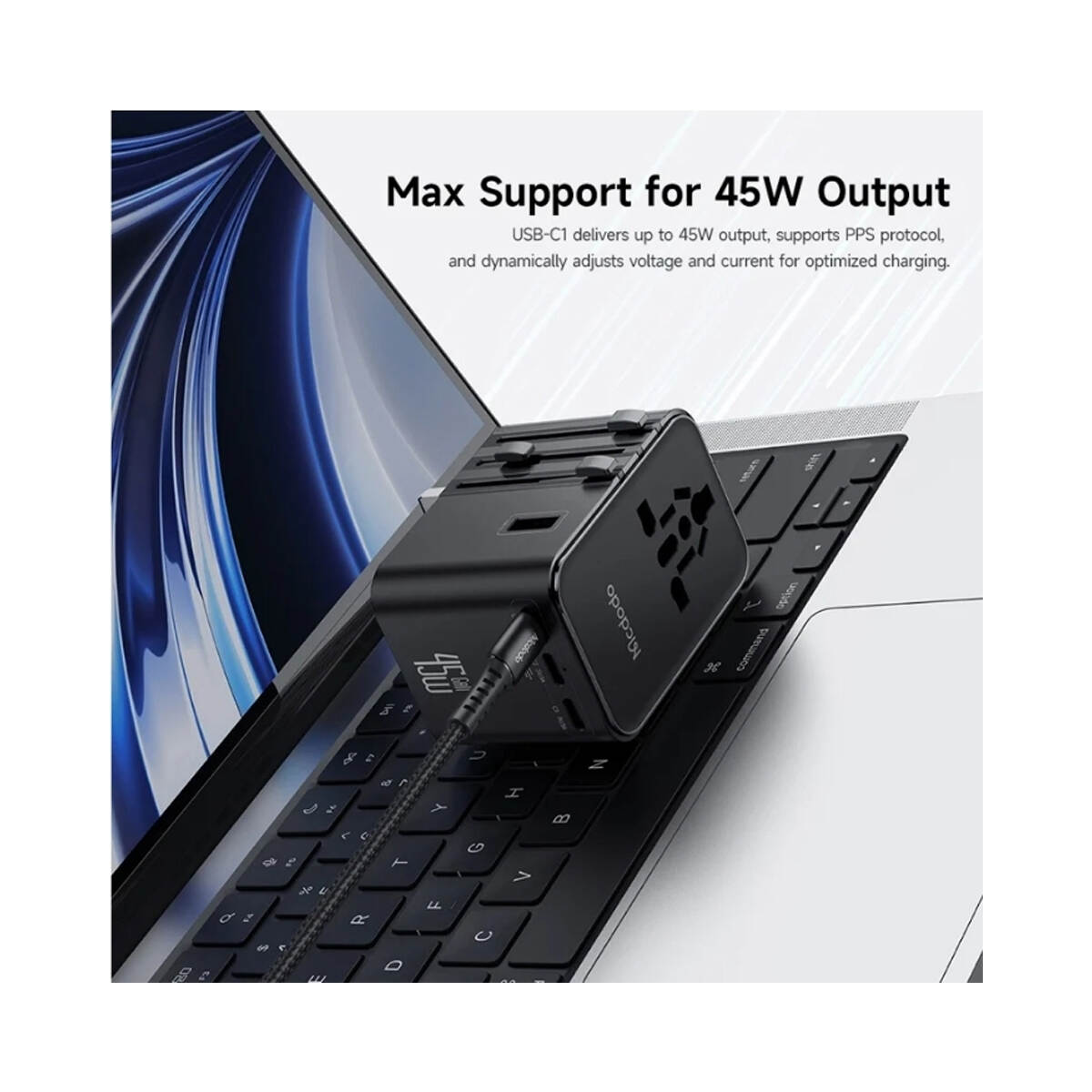 MCDODO CP-3270 Universal Travel Adapter is a must-have travel companion, delivering fast, safe, and reliable charging for all your devices. With support for multiple plug types (UK/US/EU) and up to 45W power output, it ensures your phones, tablets, and laptops stay charged wherever your journey takes you.