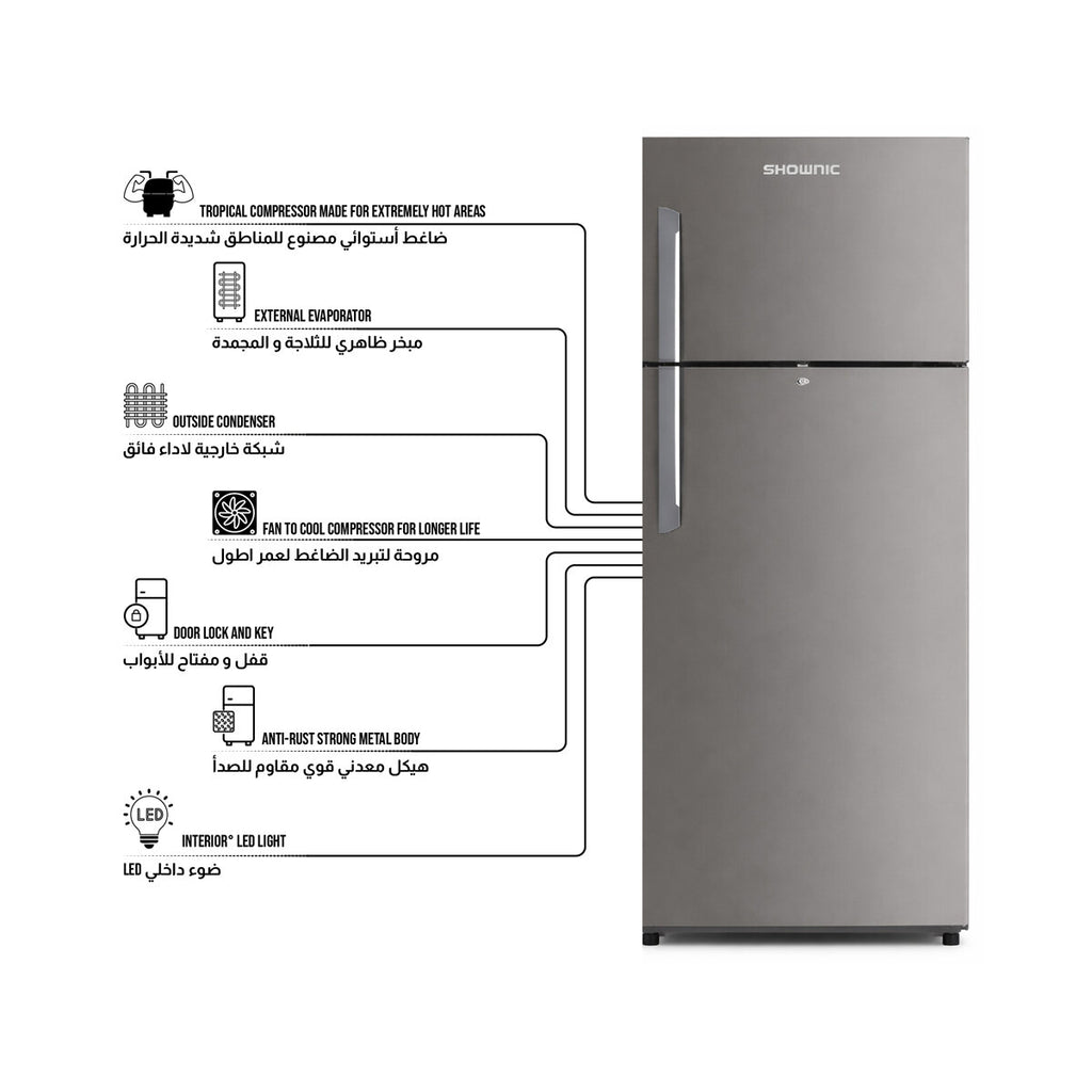 مصممة لتقديم تبريد قوي ومتانة طويلة الأمد، تتميز ثلاجة SHOWNIC RL-540ZS بنظام تبريد مباشر موثوق يحافظ على الأطعمة طازجة ومحفوظة بشكل مثالي. تم تزويدها بضاغط استوائي متطور مصمم للعمل بكفاءة حتى في المناخات شديدة الحرارة، مما يجعلها خيارًا يعتمد عليه في الظروف القاسية.