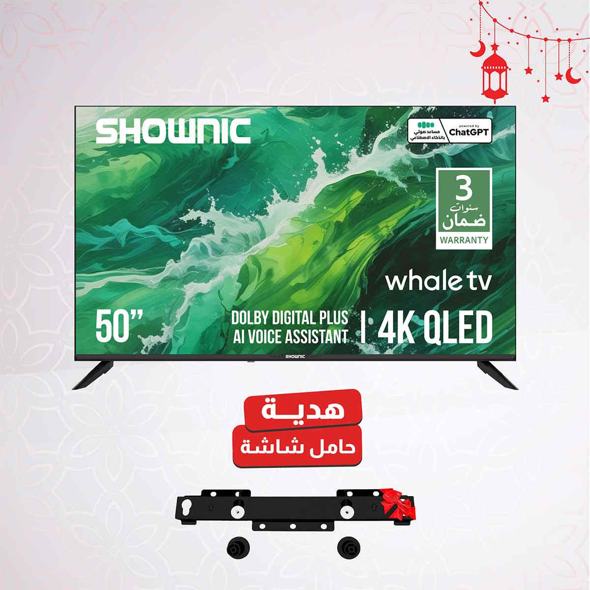 يعمل التلفزيون بنظام Whale TV 3 المعتمد من أندرويد، مما يتيح لك الوصول إلى أكثر من 1000 تطبيق لبث محتوى غير محدود. استمتع بتحكم أذكى عبر المساعد الصوتي المدعوم بالذكاء الاصطناعي مع ChatGPT، وصوت محيطي غامر بتقنية Dolby Digital Plus، واتصال سلس عبر Wi-Fi المدمج ومستقبل الأقمار الصناعية. ومع ميزة العرض متعدد الشاشات، والتحكم الصوتي، وتعدد منافذ HDMI وUSB، يجمع هذا التلفزيون بين الأداء المتميز والراحة اليومية — مع ضمان لمدة 3 سنوات.