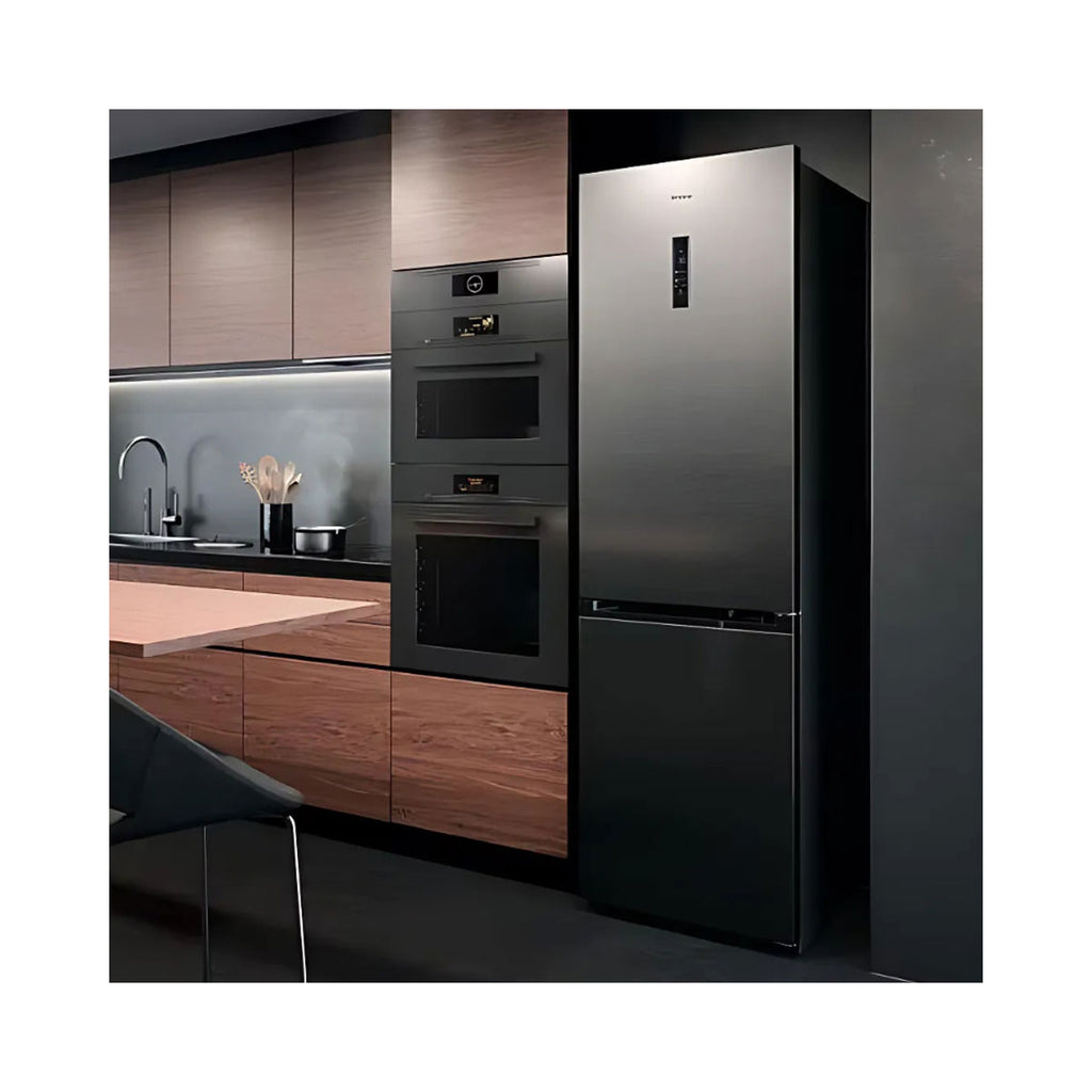 اكتشفوا مساحة تخزين أنيقة وأداءً ذكيًا مع هذه الثلاجة المدمجة الأنيقة بسعة 378 لترًا، والتي تتميز بحجرة تبريد واسعة سعة 256 لترًا وحجرة تجميد سعة 122 لترًا. تتميز بتصميم عصري من الفولاذ المقاوم للصدأ، وتحتوي على لوحة تحكم خارجية عملية لسهولة ضبط درجة الحرارة، بالإضافة إلى خاصية إغلاق الباب لمنع فقدان الطاقة عند فتحه. ستجدون في الداخل أقسامًا مصممة بعناية للفواكه/الخضراوات والأسماك واللحوم، مما يضمن نضارتها لفترة أطول، بالإضافة إلى أرفف منزلقة لسهولة الرؤية والوصول. مفصل الباب قابل للعكس، مما يمنحكم مرونة في التركيب بما يتناسب مع تصميم مطبخكم.